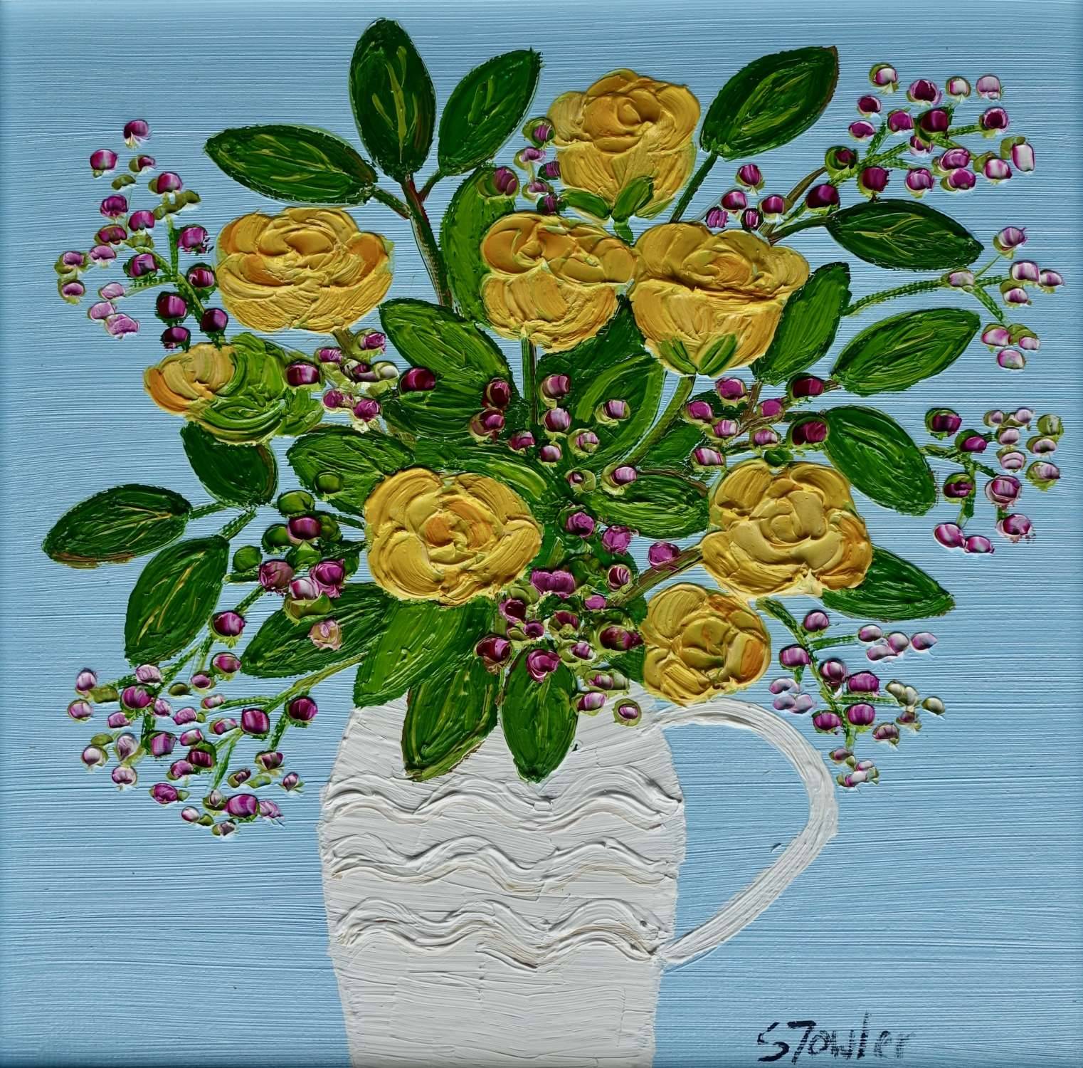 Previous Next SMALL PAINTINGS Previous Next Yellow Roses Oil on canvas board Ref: 723503 £ 350.00 Enquire about this item Yellow Rosesoil on canvas boardcanvas size 20 x 20cmframed size 33 x 33cmwhite frame Share: